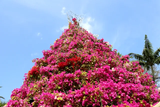 日本最大級の「ブーゲンタワー」は必見!沖縄市の東南植物楽園にて、100万輪の鮮やかな花々に包まれる「おきなわブーゲンフェア2026」が開催されています。